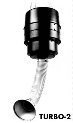 TheTURBO-2 ( two-staged turbo-blower ) sucks up an air with fumes, 70.6 CFM. and exhausts harmless air purified by the activated carbon filter and prefilter.